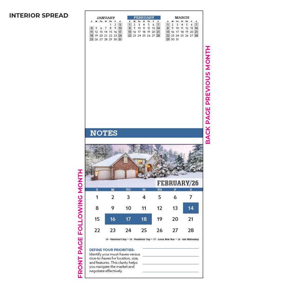 - Helpful home or real estate tips each month with a notes section on the front and back of each page.