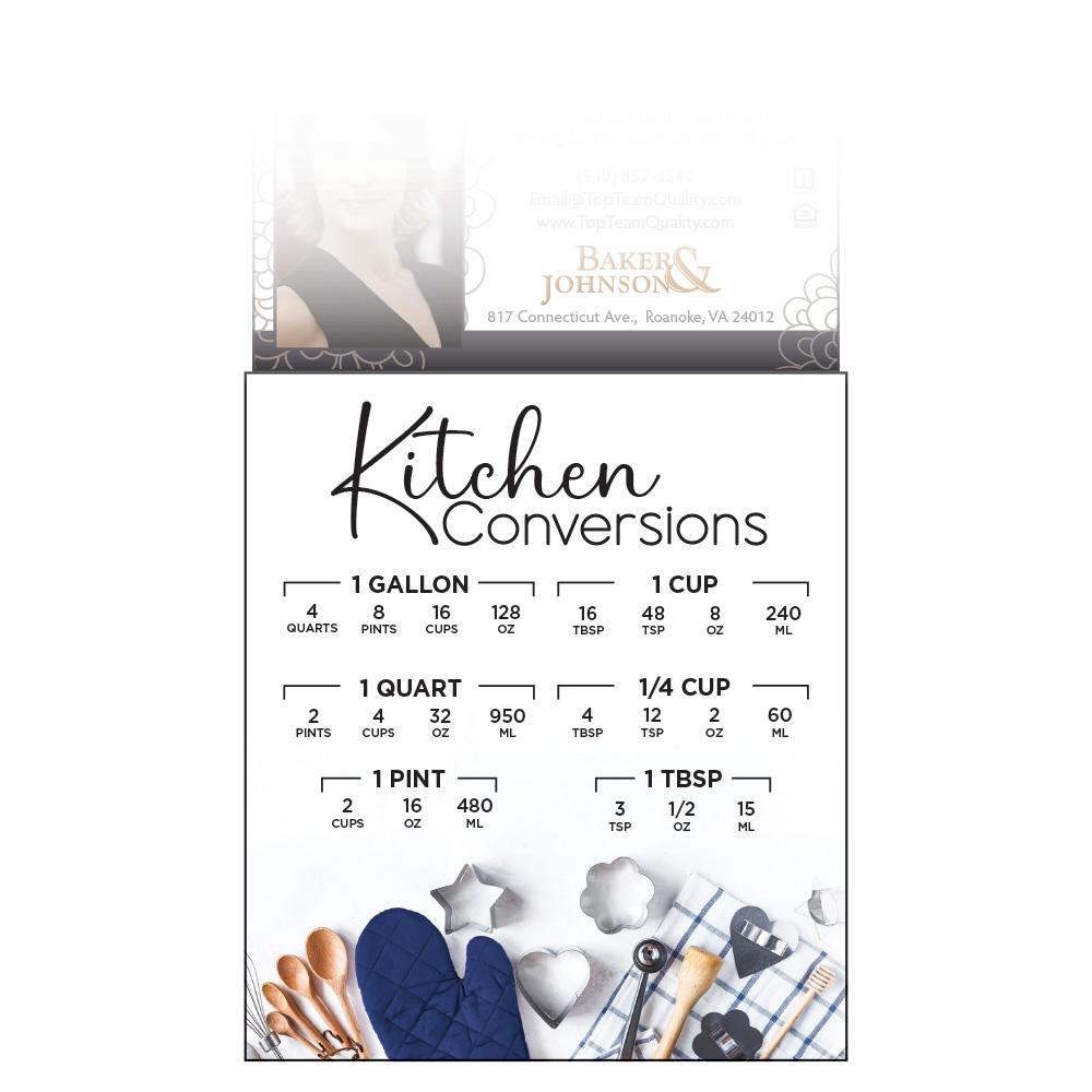 - The backer includes a kitchen equivalency chart and our exclusive House Accounts Info writable chart.
