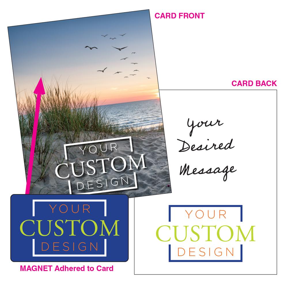 - On-brand presentation: Tailor the front message, back copy, colors, and magnet art to your business.
