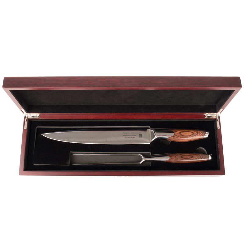 We offer custom engraving for all of our kitchen knife sets to help you stay top-of-mind. Our line of German carbon steel knives are a popular solution for client and corporate gifts as well as personal gift giving. Not sure how to care and maintain your blades? Find our knife care tips here along with instructions for honing and sharpening your blades for peak performance.